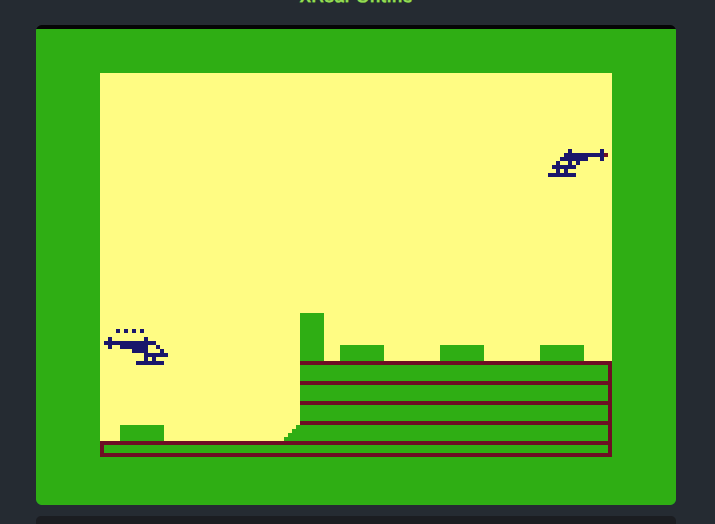 Lo scenario è composto da una grafica essenziale ma efficace, gli elicotteri sono ben disegnati, i movimenti piuttosto fluidi ed il suono dei colpi sparati da e verso il nemico sono credibili. I controlli sono semplici e tutti presenti sulla tastiera: le frecce SU e GIÙ muovono il vostro chopper verticalmente aumentando o diminuendo la quota nella zona del duello in volo. La freccia a DX serve a fare fuoco contro i nemici quando questi si troveranno orizzontalmente a tiro. Se riuscirete ad abbattere tutti e tre gli elicotteri del nemico avrete raggiunto la fine della missione. A questo punto potete premere il tasto S per cominciare un nuovo duello volante.