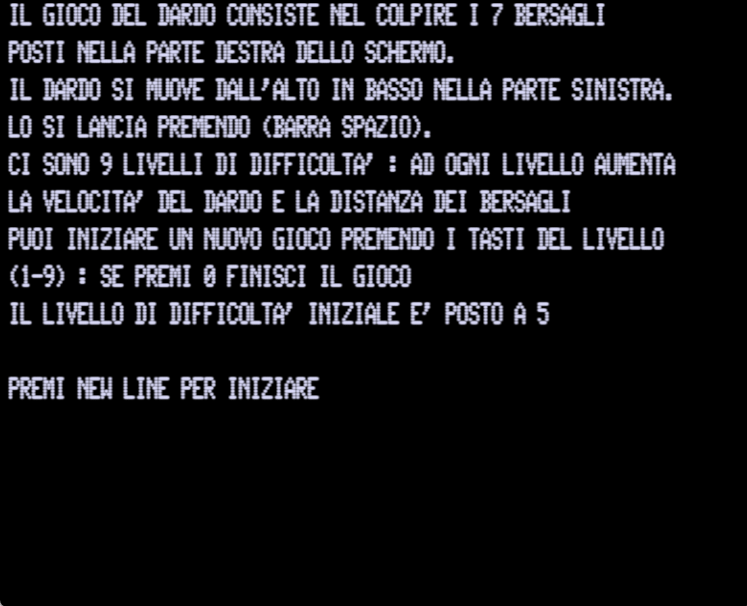 70 PRINT"IL DARDO SI MUOVE DALL'ALTO IN BASSO NELLA PARTE SINISTRA."