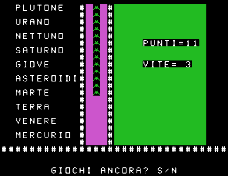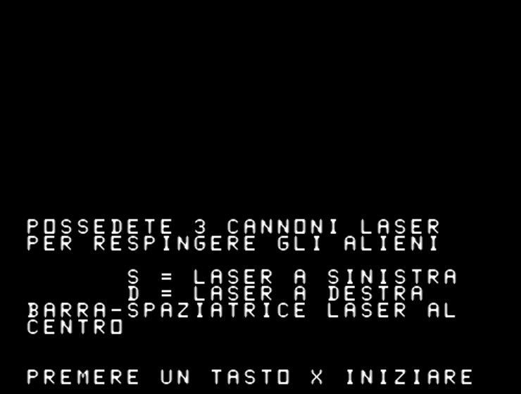 Ovviamente noi, con i nostri 3 cannoni laser gli renderemo difficile l’impresa e, a costo di perire nell’impresa vendendo cara la pelle, cercheremo di distruggere tutte le navicelle o almeno mandarne al creatore il piu’ possibile!