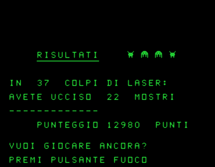 1680 PRINT "IN ";O;" COLPI DI LASER:"