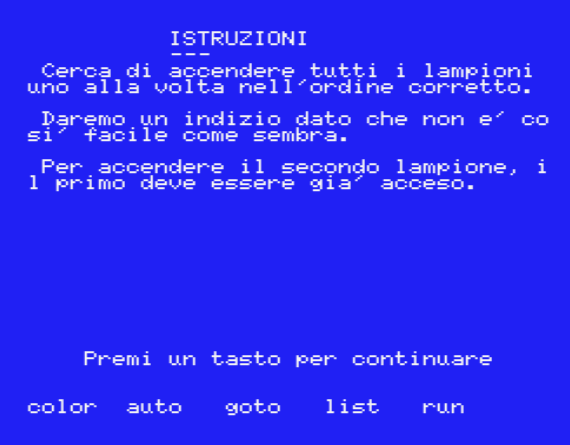 770 PRINT" Per accendere il secondo lampione, il primo deve essere gia' acceso."
