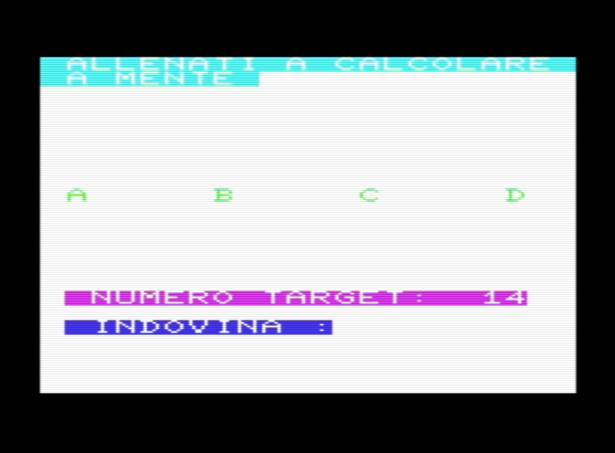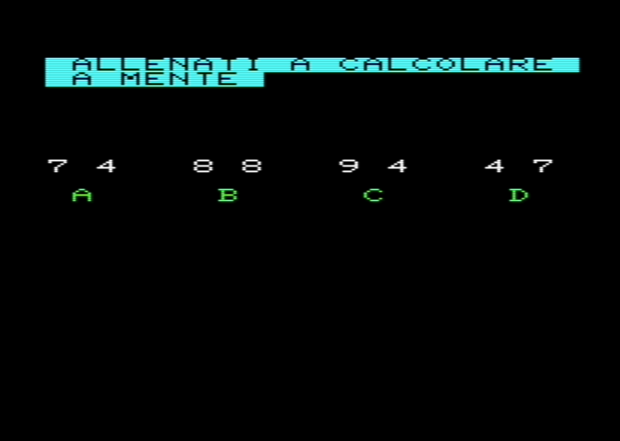 320 print"{home}{cyan}{reverse on} allenati a calcolare a mente {white}"