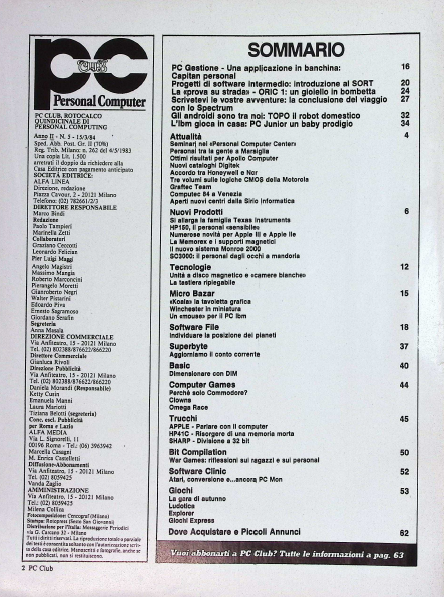 Dedito prevalentemente al mondo degli appassionati di personal e home computer, Personal Computer Club era un mensile ricco di contenuti fissi pensati per accompagnare il lettore nella scoperta dell’informatica.