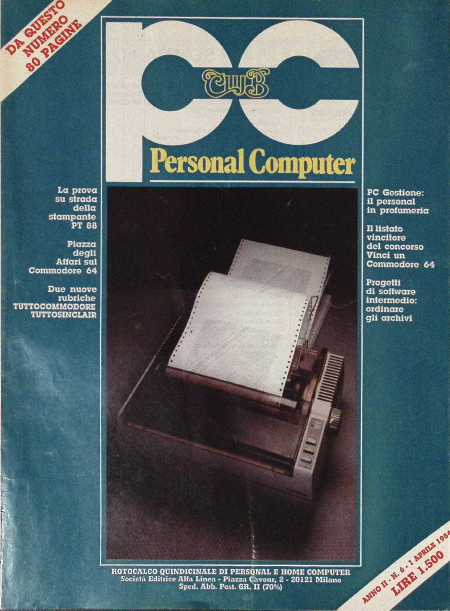 In evidenza in questo numero Il nuovo professional della Sinclair: QL, alla scoperta del nuovo nato in caso Sinclair e come potra’ cambiare la storia del personal computer. Il listato-vincitore del concorso «Vinci un Commodore 64»: simulare l’istruzione PLOT, un programma in Assembly per dotare il Commodore 64 di una veloce istruzione PLOT/DRAW.