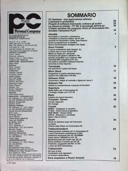 Dedito prevalentemente al mondo degli appassionati di personal e home computer, Personal Computer Club era un mensile ricco di contenuti fissi pensati per accompagnare il lettore nella scoperta dell’informatica.