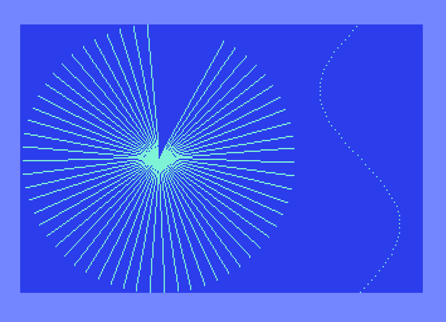 Per tutte le informazioni sulle routine grafiche, vi rimandiamo alla consultazione del numero 10 della rivista il cui PDF si trova facilmente in Rete. Qui di seguito forniamo l’immagine di un dischetto ccc10-routine-grafiche.d64 e le istruzioni base per utilizzare le routine, il cui listato principale include al suo interno un esempio d’uso. Un secondo esempio base si trova sul medesimo dischetto e può essere utilizzato per cominciare a scrivere un nuovo programma che utilizzi le routine e la pagina grafica del C64.