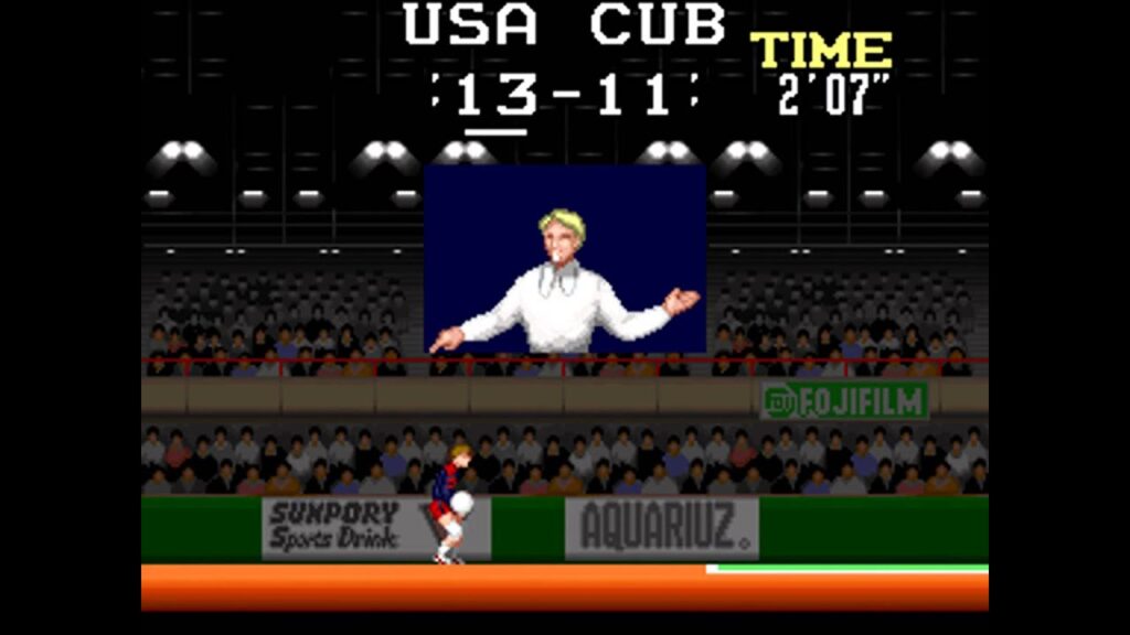 Ci sono anche tre servizi speciali: una battuta al salto decisamente aggressiva ed in grado di andare a punto almeno la metà delle volte nelle prime due-tre partite, una a pallonetto che fa addirittura volare la palla oltre l’inquadratura della camera con un bell’effetto grafico di profondità del soffitto del palazzetto, ed il servizio Fantasma – che chi vi scrive chiama a foglia morta – che fa certamente punto nei primi tre incontri e che si può fare soltanto una volta. Quest’ultimo è molto spettacolare a livello visivo con la sfera che sembra moltiplicarsi. Generalmente questo è il colpo finale per ovvi motivi tattici. Ma non funziona contro l’URSS.