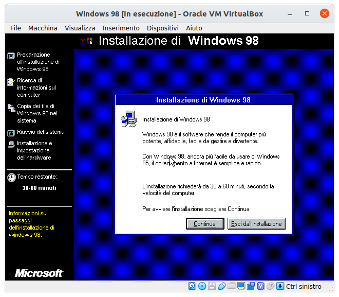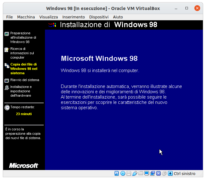 Windows 98 si riavvierà automaticamente e, rullo di tamburi… il sistema è finalmente installato!